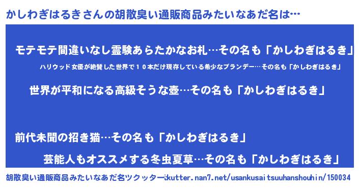 | 肩書あだ名 | 『かしわぎはるき大統領』 |