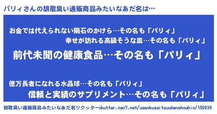 | ヒーロー風カッコイイあだ名 | 『ネオパリィ』『友情の使者パリィ』 |