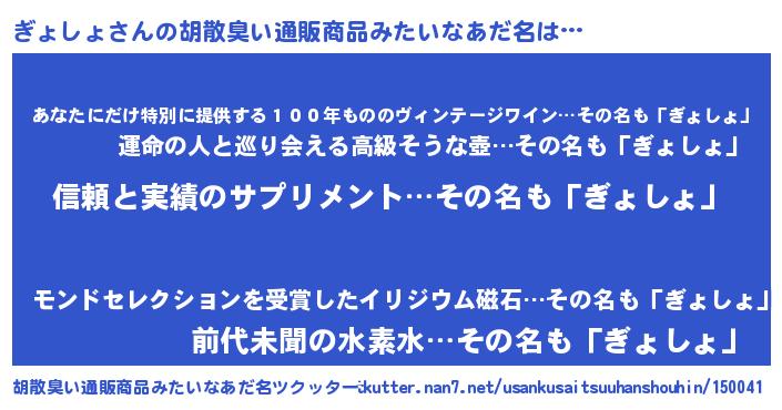 | 意味不明あだ名 | 『とにかく怪しいぎょしょ』 |