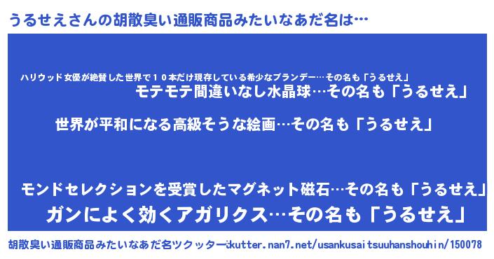| ヘコむあだ名 | 『豆乳』『うるもー』『うるっちょ』 |