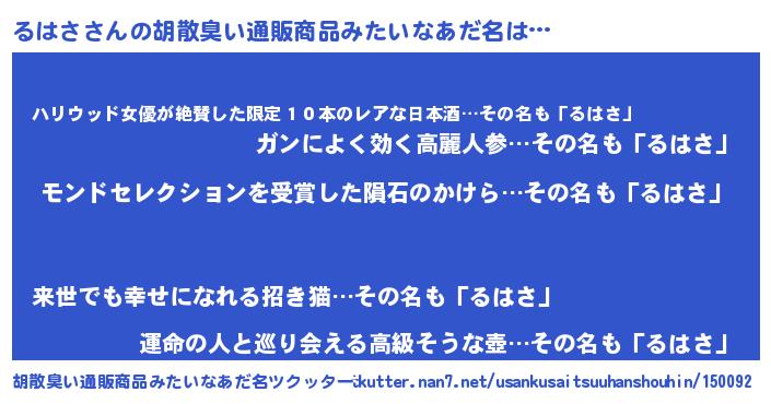 | ヒーロー風カッコイイあだ名 | 『天空の使者るはさ』『仮面ルハダー』 |