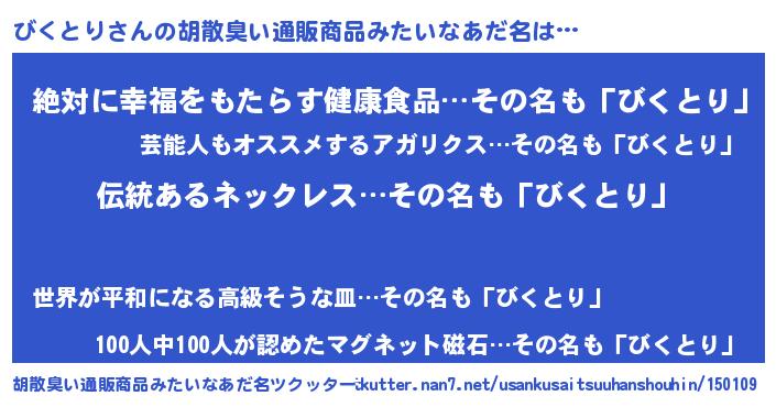 | 意味不明あだ名 | 『とにかく怪しいびくとり』 |