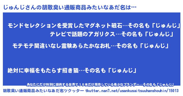 | 意味不明あだ名 | 『ペロリンじゅんじ』『自称じゅんじ』 |