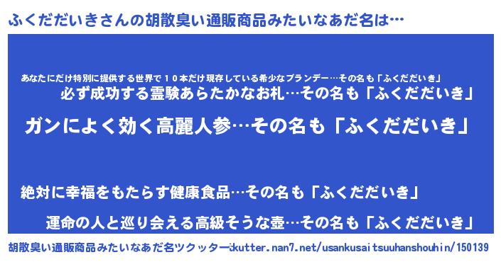 | 女子向けラノベタイトル風あだ名 | 『ふくだだいきなんてお断りですっ。』 |