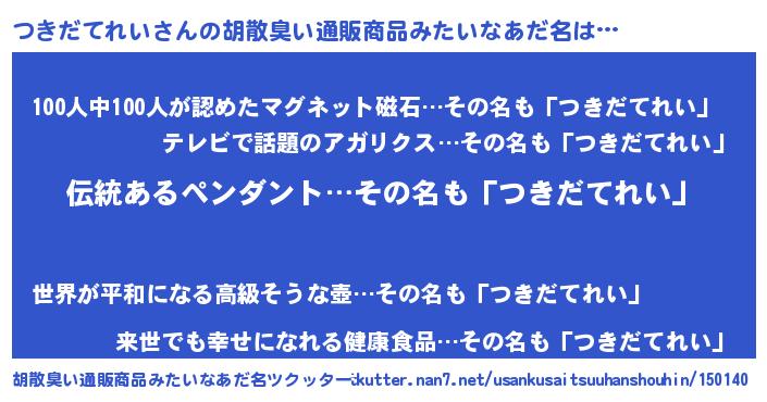 | ヘコむあだ名 | 『つきっぺ』『つきだてれい(小並感)』 |