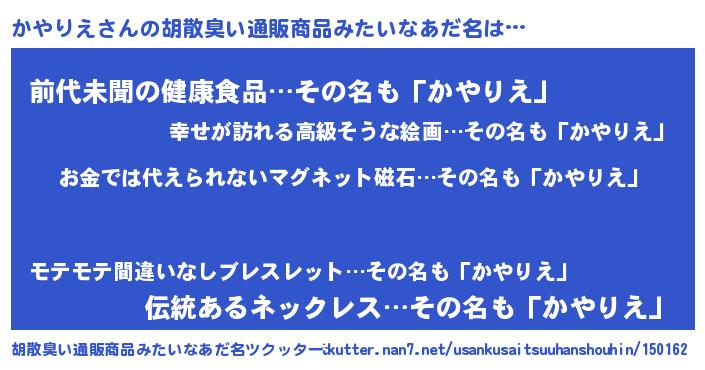 | 肩書あだ名 | 『かやりえ助教授』『かやりえ校長』 |