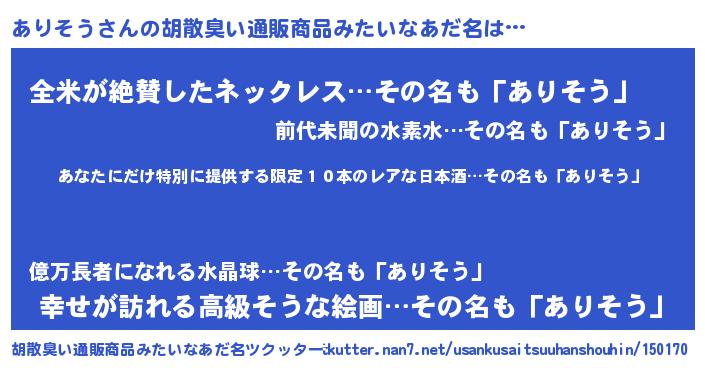 | 意味不明あだ名 | 『住所不定無職ありそう(56歳)』 |