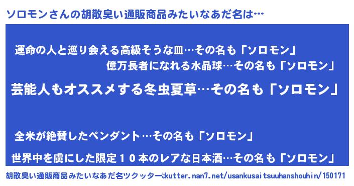 | 意味不明あだ名 | 『自称ソロモン』『ソロモンフォーエバー』 |