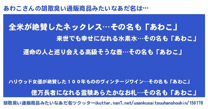 | 女子向けラノベタイトル風あだ名 | 『あわこの婚約者』『あわこ様がみてる』 |