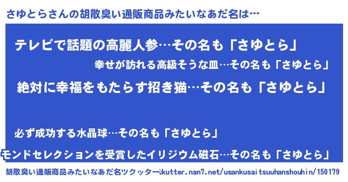 | 男性向けラノベタイトル風あだ名 | 『さゆとらという概念が存在しない退屈な世界 』 |