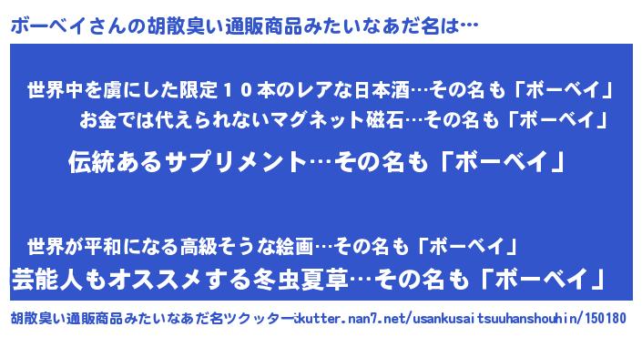 | 意味不明あだ名 | 『とにかく怪しいボーベイ』 |