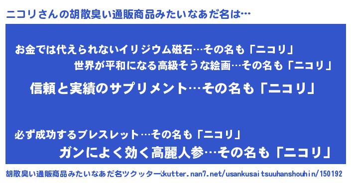 | 意味不明あだ名 | 『とにかく怪しいニコリ』『自称ニコリ』 |