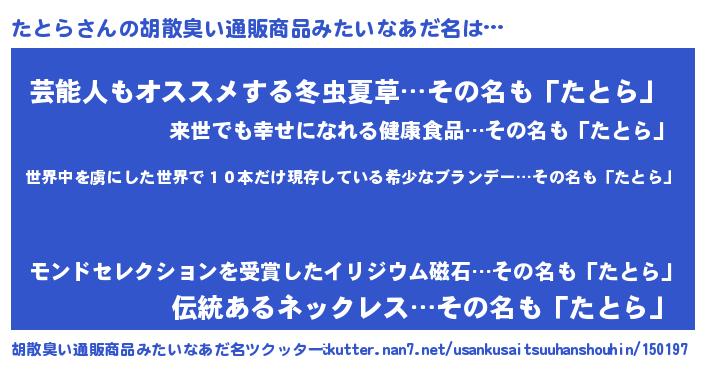 | 意味不明あだ名 | 『なめこ科たとら属』『自称たとら』 |