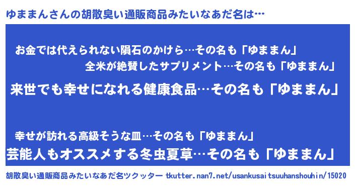 | 意味不明あだ名 | 『永久保存ゆままん』『自称ゆままん』 |