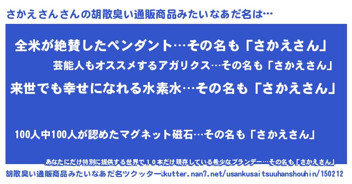 | 意味不明あだ名 | 『永久保存さかえさん』『自称さかえさん』 |