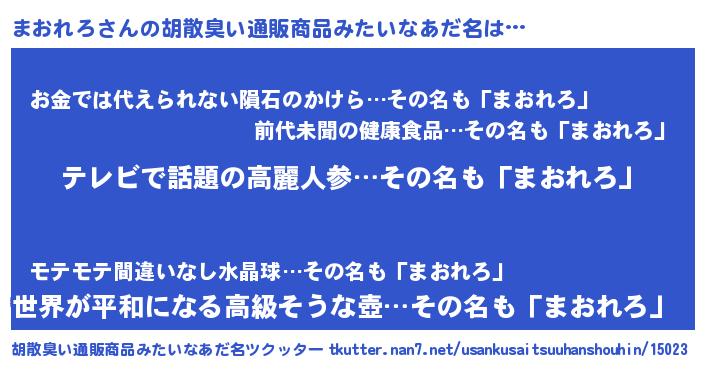 | 意味不明あだ名 | 『自称まおれろ』『まおれろフォーエバー』 |