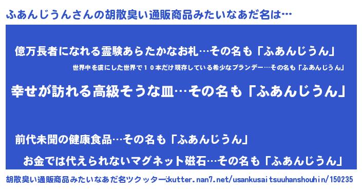 | 伝説のあだ名 | 『秘められし陰陽師ふあんじうん』 |
