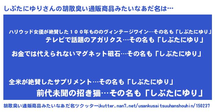 | ヘコむあだ名 | 『しぶたにゆり(笑)』『しぶお』 |