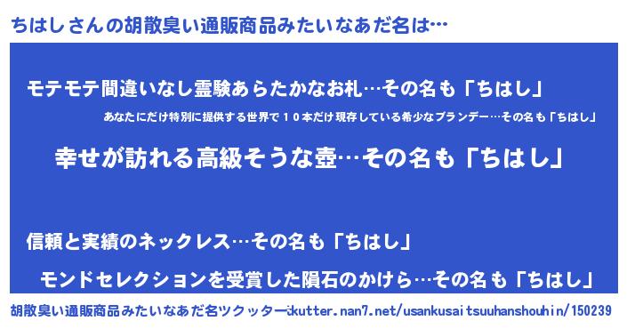 | ヘコむあだ名 | 『つくし』『ちはにゅー』『ちはお』 |