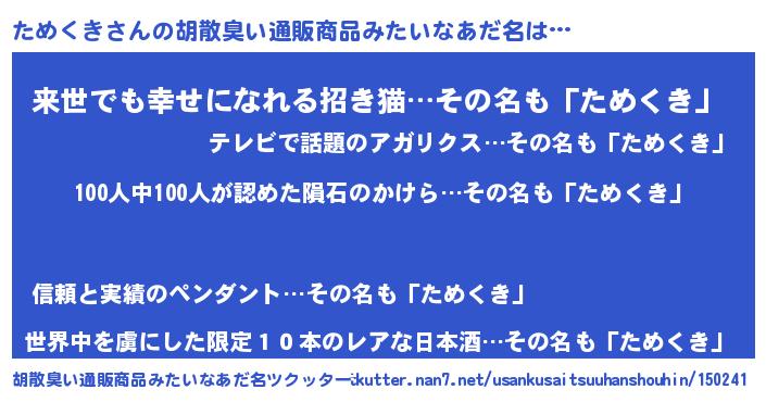 | ヘコむあだ名 | 『ためくき(遠い目)』『ためお』 |