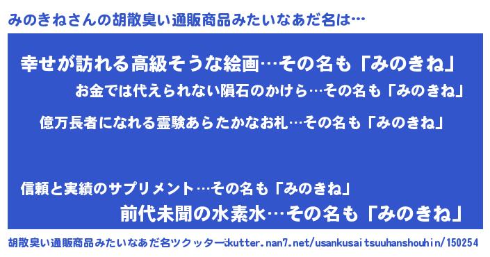 | 意味不明あだ名 | 『ペロリンみのきね』『永久保存みのきね』 |