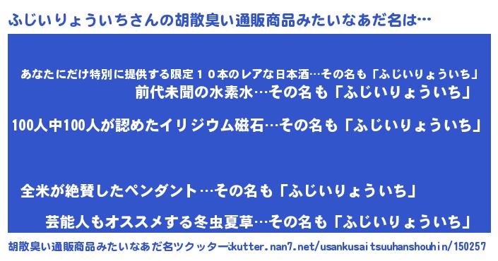 | ヒーロー風カッコイイあだ名 | 『正義の使者ふじいりょういち』 |