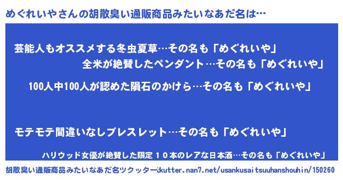 | ヘコむあだ名 | 『めぐっちょ』『めぐっふぃ~』 |