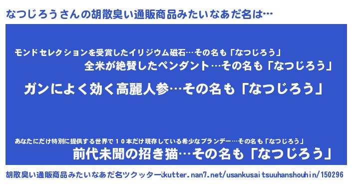 | 意味不明あだ名 | 『自称なつじろう』『永久保存なつじろう』 |