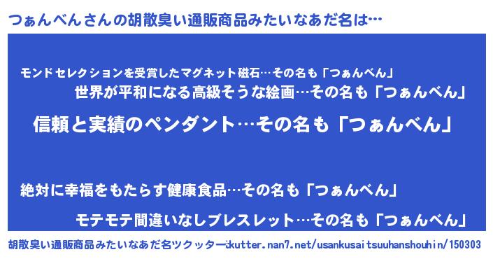 | 女子向けラノベタイトル風あだ名 | 『つぁんべんは平凡を望む』 |