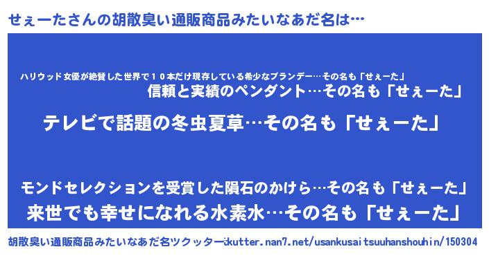 | 意味不明あだ名 | 『自称せぇーた』『永久保存せぇーた』 |