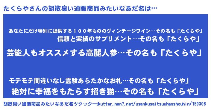 | ヘコむあだ名 | 『たくらや(小並感)』『たくお』 |
