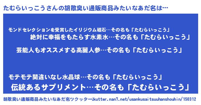 | 意味不明あだ名 | 『自称たむらいっこう』 |