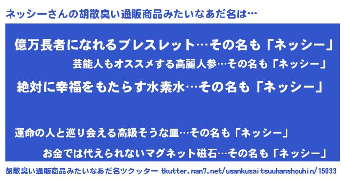 | ヒーロー風カッコイイあだ名 | 『ネオネッシー』『スーパーネッシー』 |
