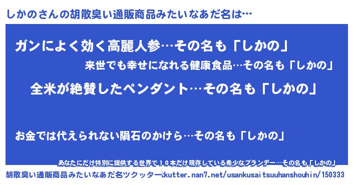| 意味不明あだ名 | 『とにかく怪しいしかの』『自称しかの』 |
