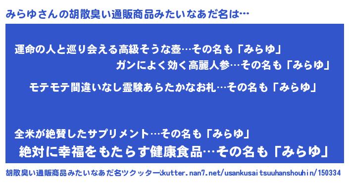 | 意味不明あだ名 | 『ペロリンみらゆ』『みらゆフォーエバー』 |