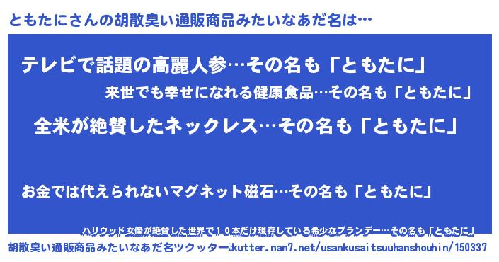 | ヘコむあだ名 | 『ともっ子』『ともたに(小並感)』 |