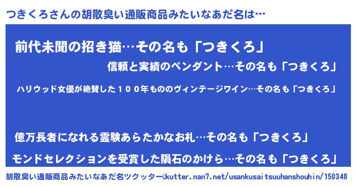 | ヘコむあだ名 | 『つきくろ(小並感)』『つきお』 |