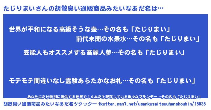 | 意味不明あだ名 | 『自称たじりまい』『永久保存たじりまい』 |