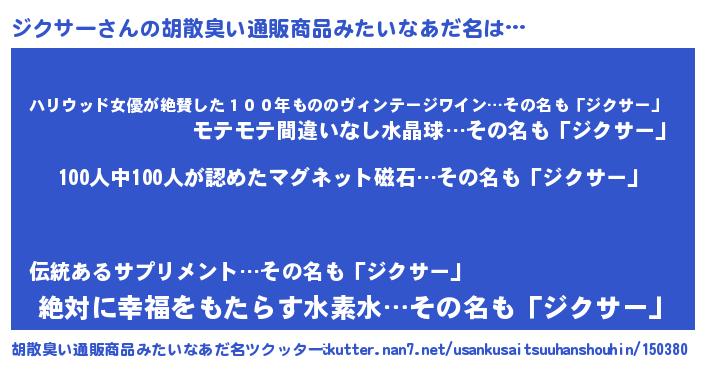 | ヘコむあだ名 | 『ジクサー(笑)』『ジクふぇ~』 |