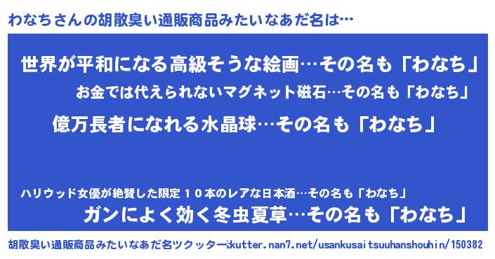 | ヘコむあだ名 | 『わなもー』『なまこ酢』『わなっぺ』 |