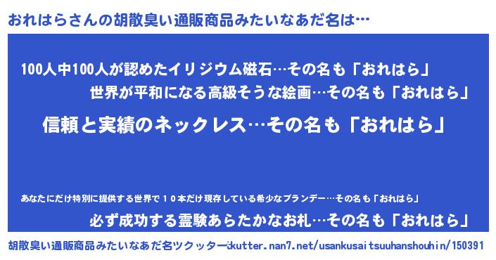 | ヒーロー風カッコイイあだ名 | 『黄金騎士オレ』『友情の使者おれはら』 |