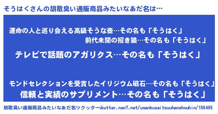 | 意味不明あだ名 | 『自称そうはく』『そうはくフォーエバー』 |