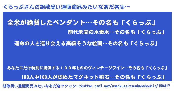 くらっぷさんの胡散臭い通販商品みたいなあだ名をツクッター!
