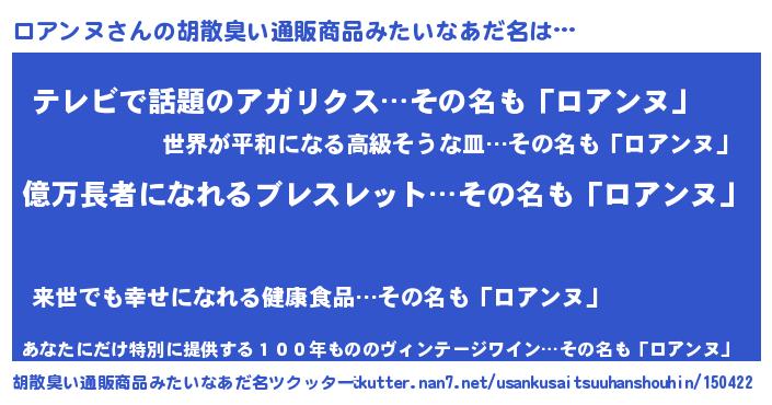 | 意味不明あだ名 | 『ペロリンロアンヌ』『自称ロアンヌ』 |
