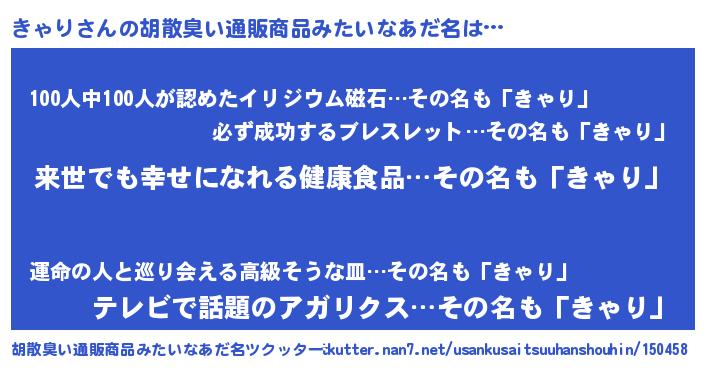 | 意味不明あだ名 | 『永久保存きゃり』『自称きゃり』 |