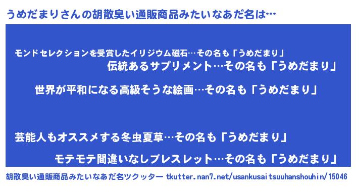 | 意味不明あだ名 | 『うめだまりフォーエバー』 |