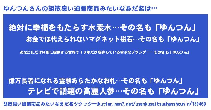 | 意味不明あだ名 | 『住所不定無職ゆんつん(86歳)』 |