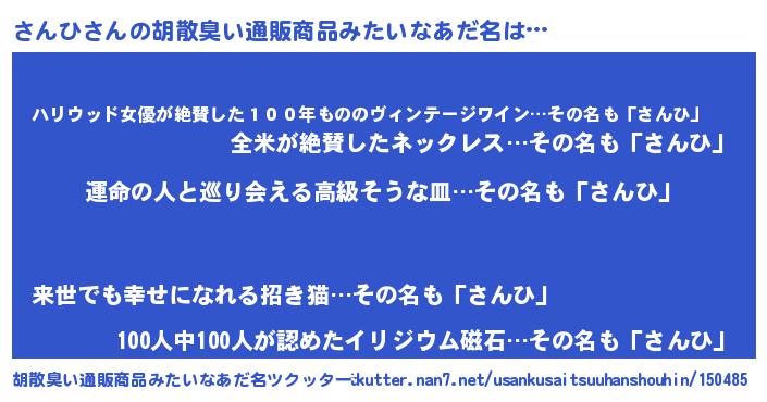 | ヘコむあだ名 | 『酢こんぶ』『さんお』『さんひ(笑)』 |