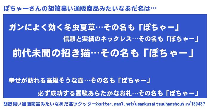 | ヘコむあだ名 | 『ぽちゃー(小並感)』『ぽちもー』 |