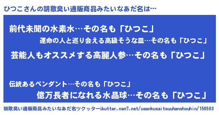 | ヘコむあだ名 | 『ひつこ(小並感)』『ひつもー』 |